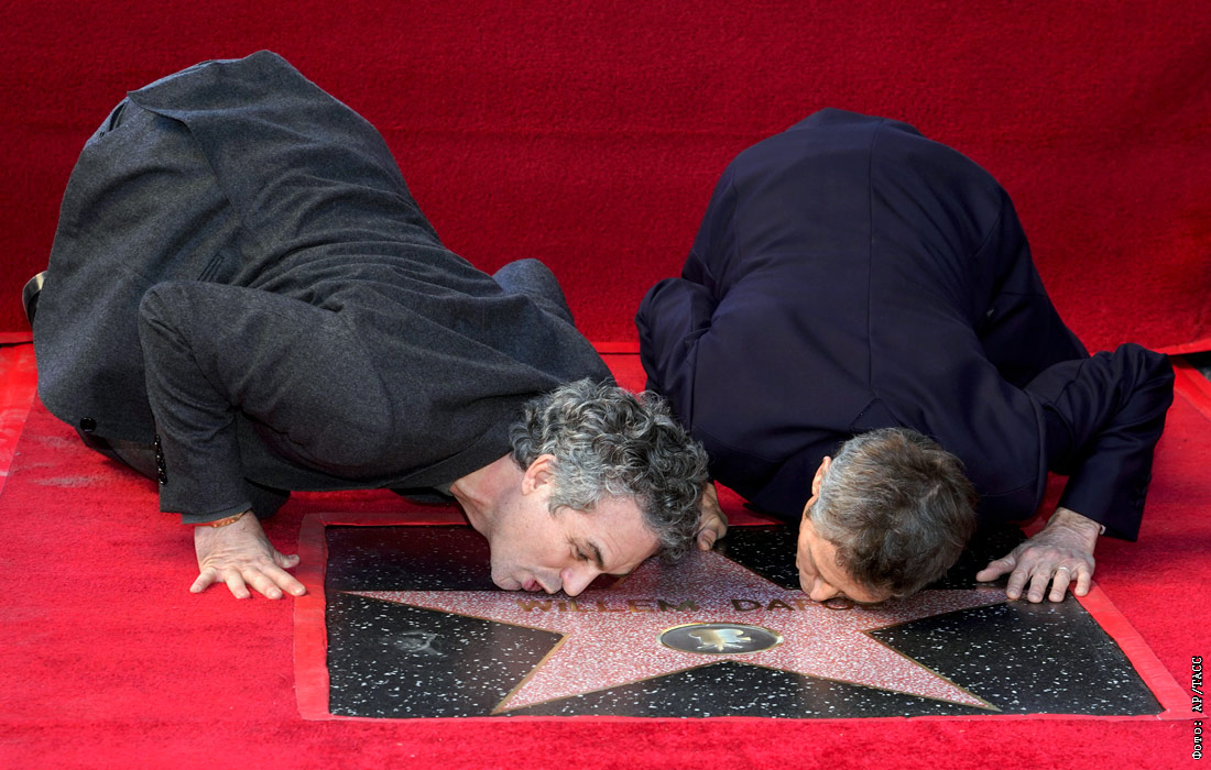 Актер Уиллем Дефо (справа) получил именную звезду на Аллее славы в Голливуде