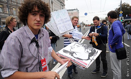 Колонны оппозиционных сил, участвующих в "Марше миллионов" в Москве, начали движение по Бульварному кольцу.