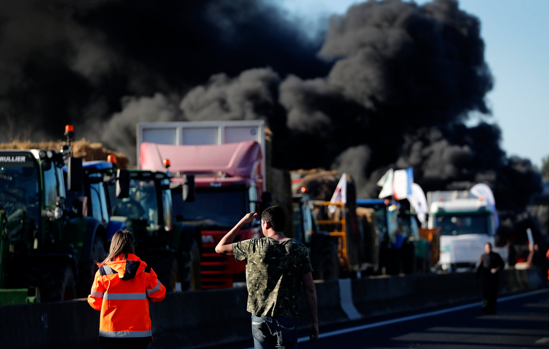 В минувший понедельник массовое протестное движение сельхозпроизводителей началось в регионе Окситания из-за зашедших в тупик переговоров с правительством. Фермеры выступают против повышения налогов и роста цен, в частности на топливо, а также требуют отменить ограничения, связанные с вводимыми во Франции и ЕС экологическими стандартами.