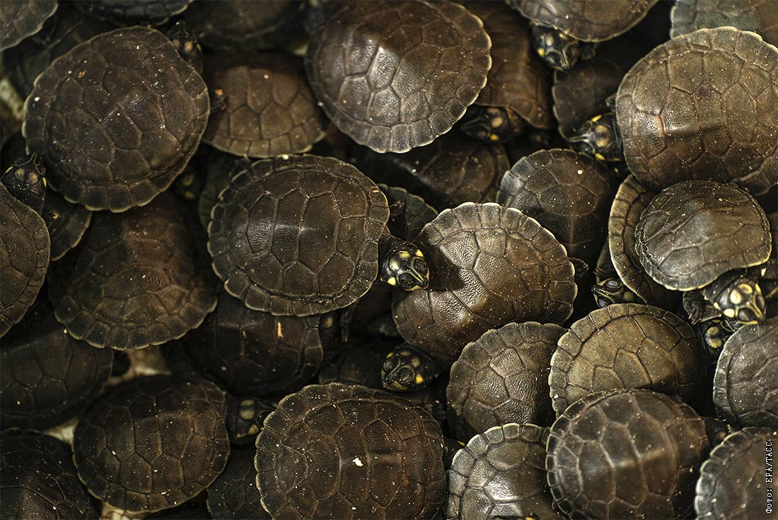 В национальном парке Жау в бразильском штате Амазонас выпустили 800 детенышей речных черепах в рамках программы по сохранению популяции