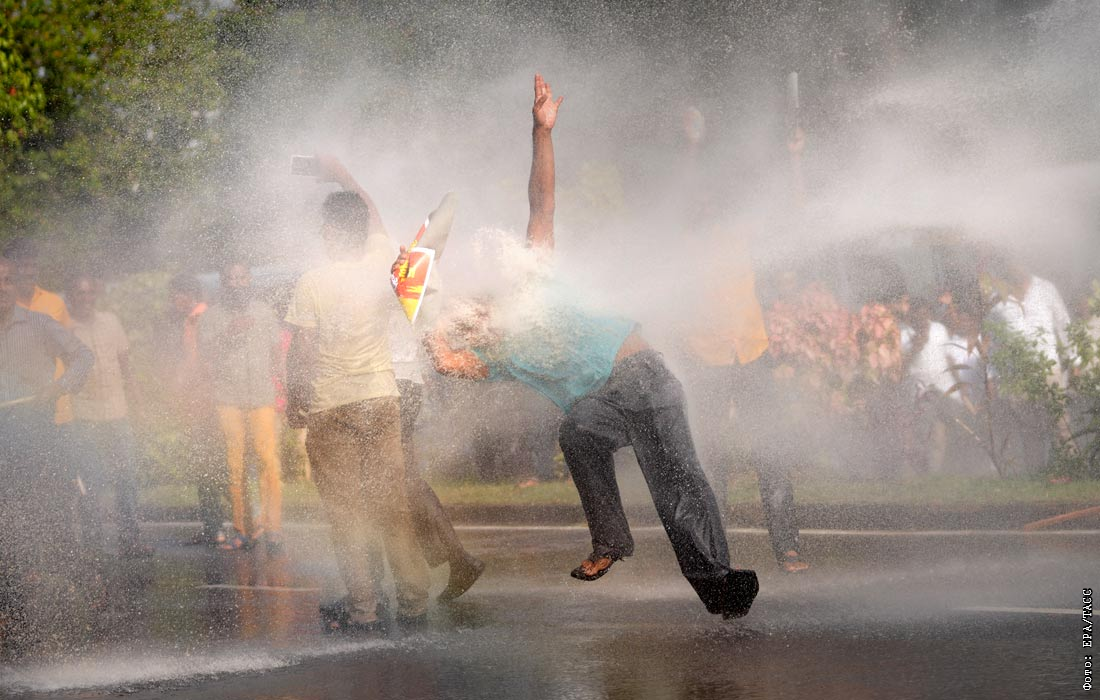 Полиция применила водометы на акции протеста сторонников оппозиции против высоких налогов и повышения цен на электроэнергию и топливо в Коломбо