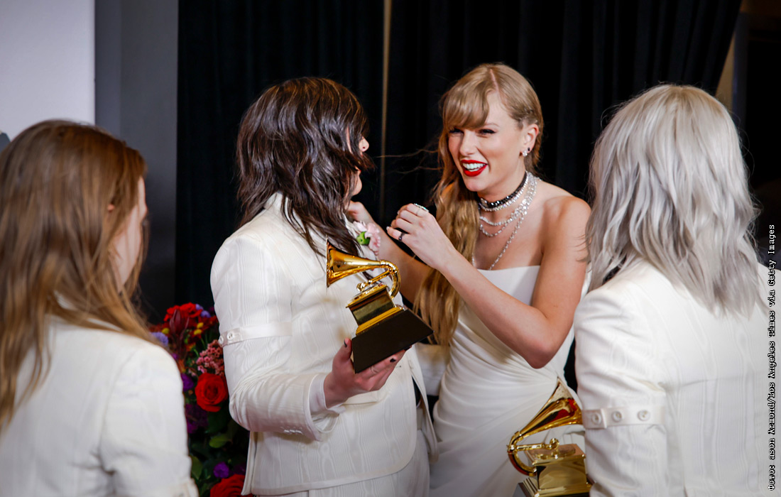 Участницы группы Boygenius и певица Тейлор Свифт, в четвертый раз получившая награду за лучший альбом года