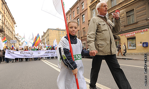 В Санкт-Петербурге состоялось сразу три разрешенных "Марша миллионов". Участники первого марша - представители "Другой России", "Солидарности", Национал-демократической партии, "Рот-Фронт", "гражданской ответственности". Второй "Марш миллионов" был организован гражданским комитетом во главе с Ольгой Курносовой. Участники третьего "Марша миллионов" пронесли белые шары, флаги с символикой ЛГБТ-организаций. Сюда же вошла колонна оргкомитета "Демократический Петербург", в который вошли партии "Яблоко", "Партия народной свободы", организация "Христианские демократы", "Гражданская инициатива", Либертарианская партия, правозащитный совет Петербурга, ряд ЛГБТ-организаций.