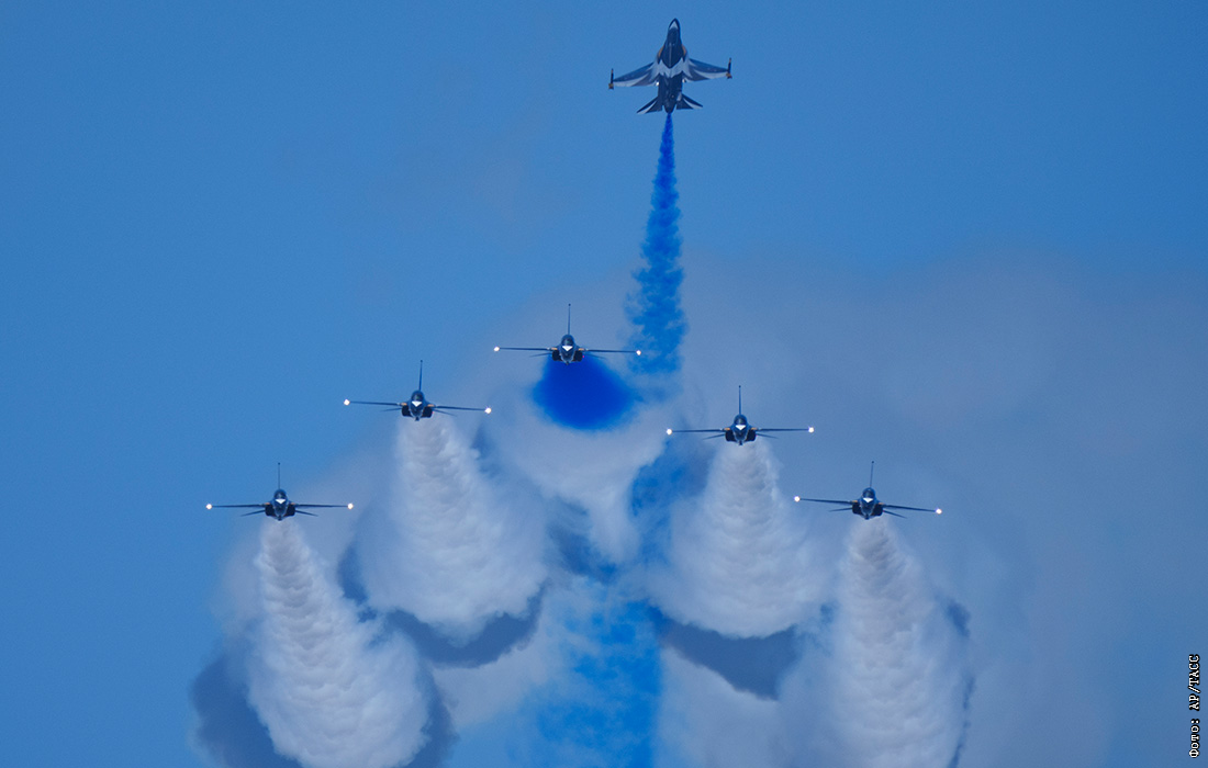 Пилотажная группа южнокорейских ВВС "Черные Орлы" во время выступления в первый день авиашоу