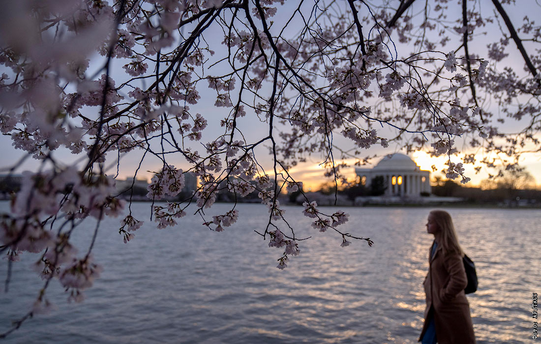 Цветение вишни вокруг в Вашингтоне