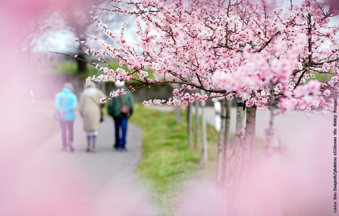 Цветущие миндальные деревья в Гиммельдингене, Германия