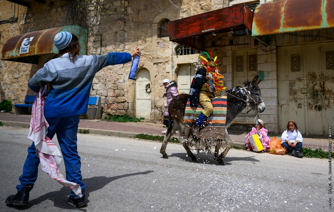 Участники ежегодного парада в честь Пурима на Западном берегу реки Иордан