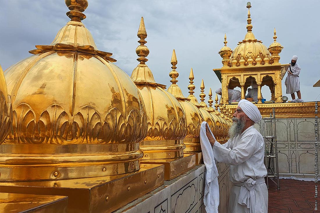 Добровольцы чистят позолоту в Золотом храме в Амристаре