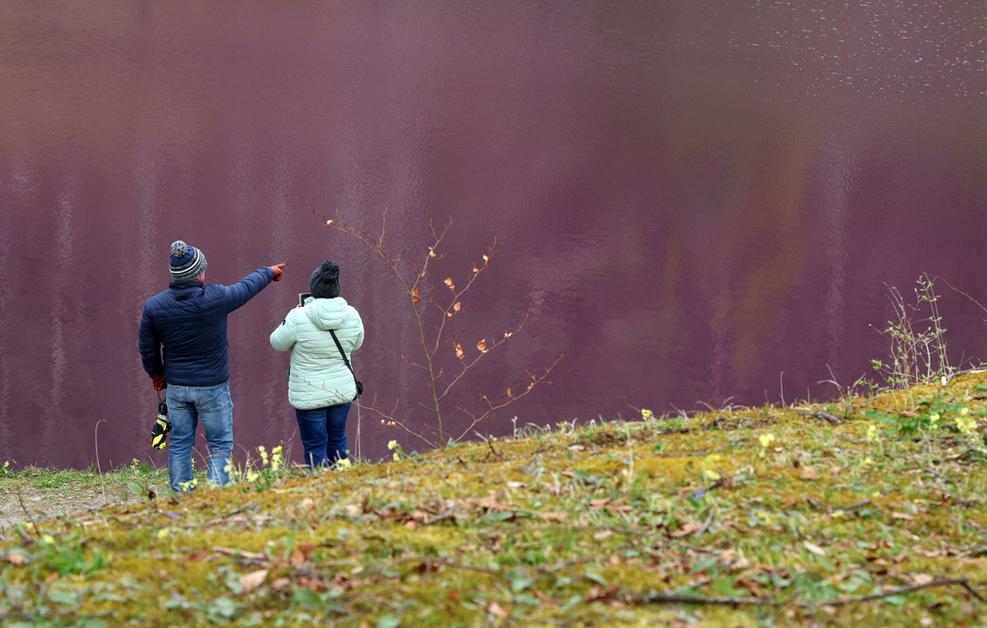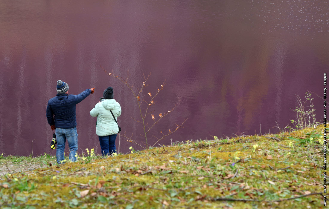В немецком городе Фюссен пруд окрасился в фиолетовый цвет из-за наличия в воде бактерий