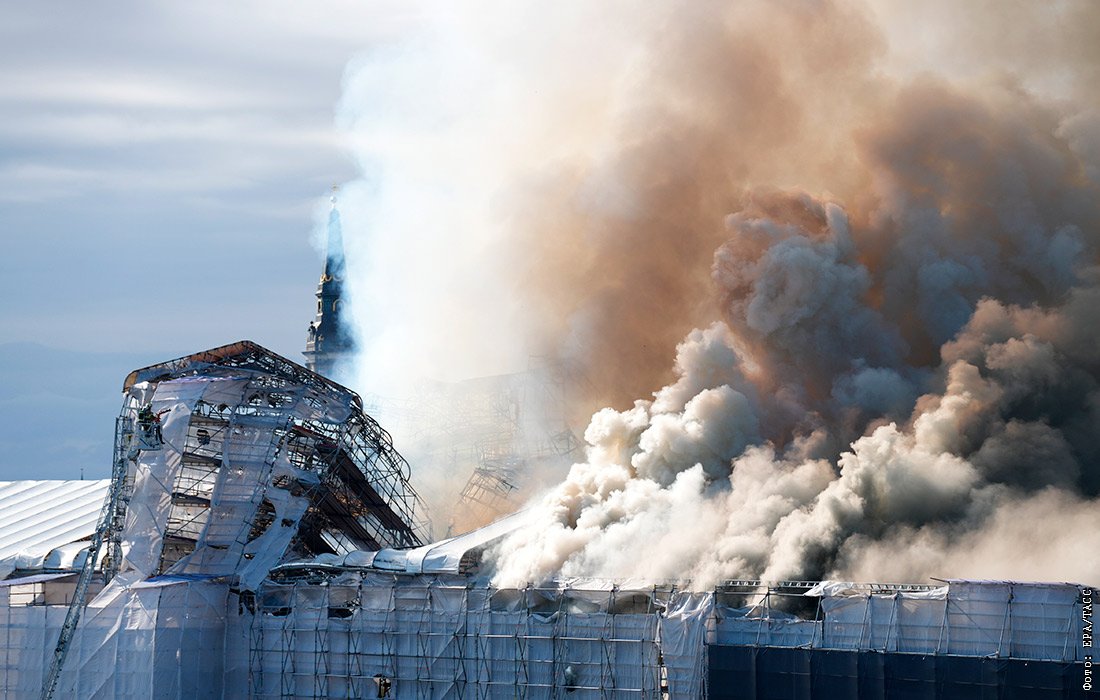 В Копенгагене произошел пожар в историческом здании фондовой биржи