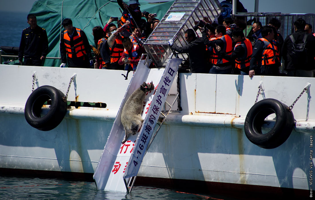 Десять пятнистых тюленей выпущены в океан у берегов китайского города Далянь