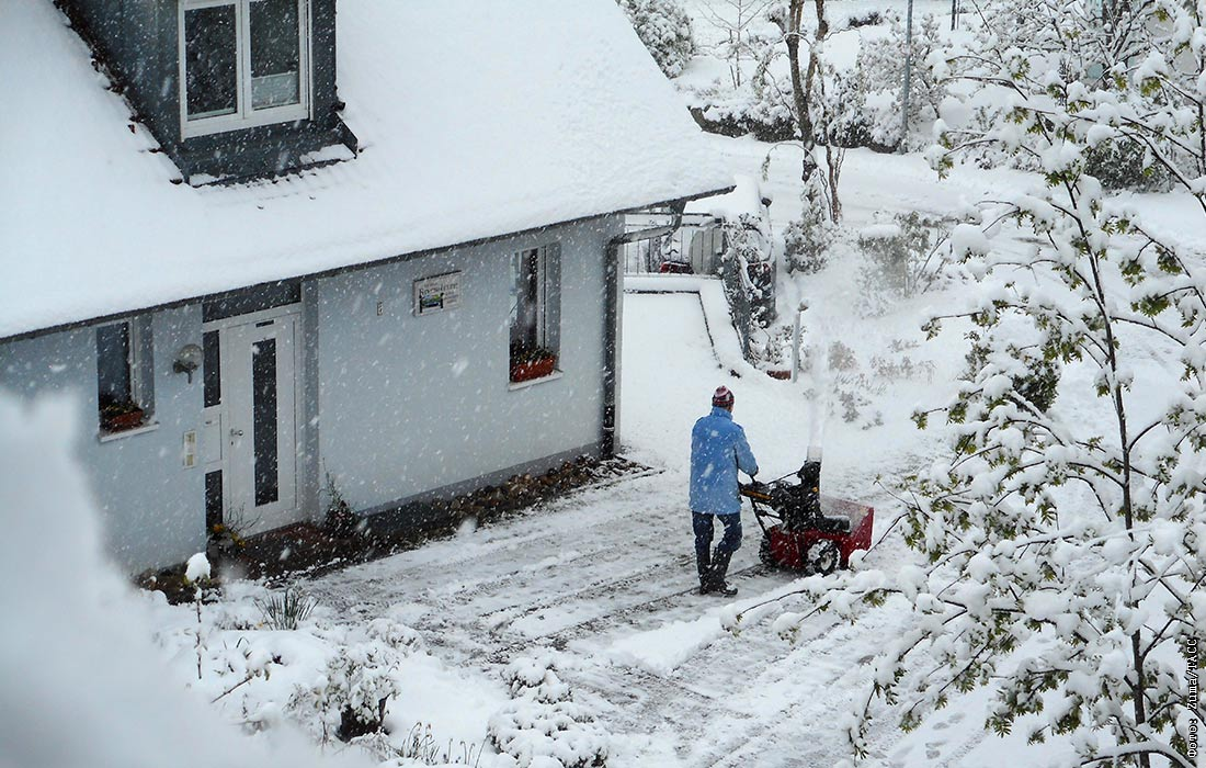 Снегопад в немецкой общине Санкт-Петер в земле Баден-Вюртемберг