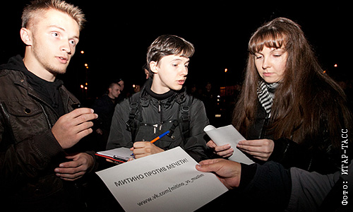 Жители московского района Митино во время стихийного митинга против строительства Исламского гуманитарного центра.