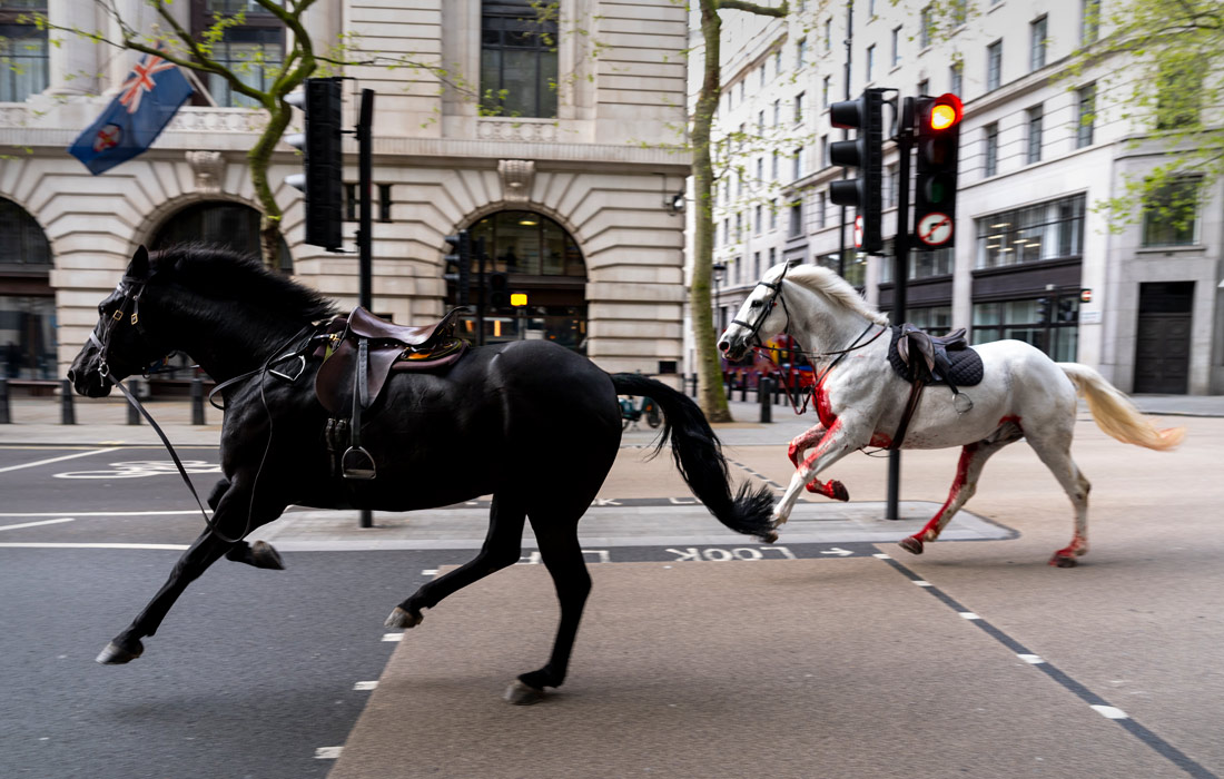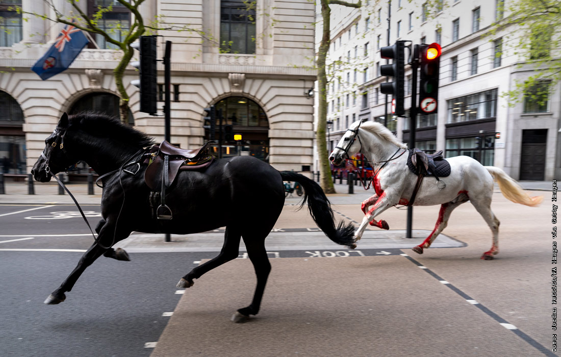 В Лондоне лошади королевской конной гвардии сбежали во время утренних учений