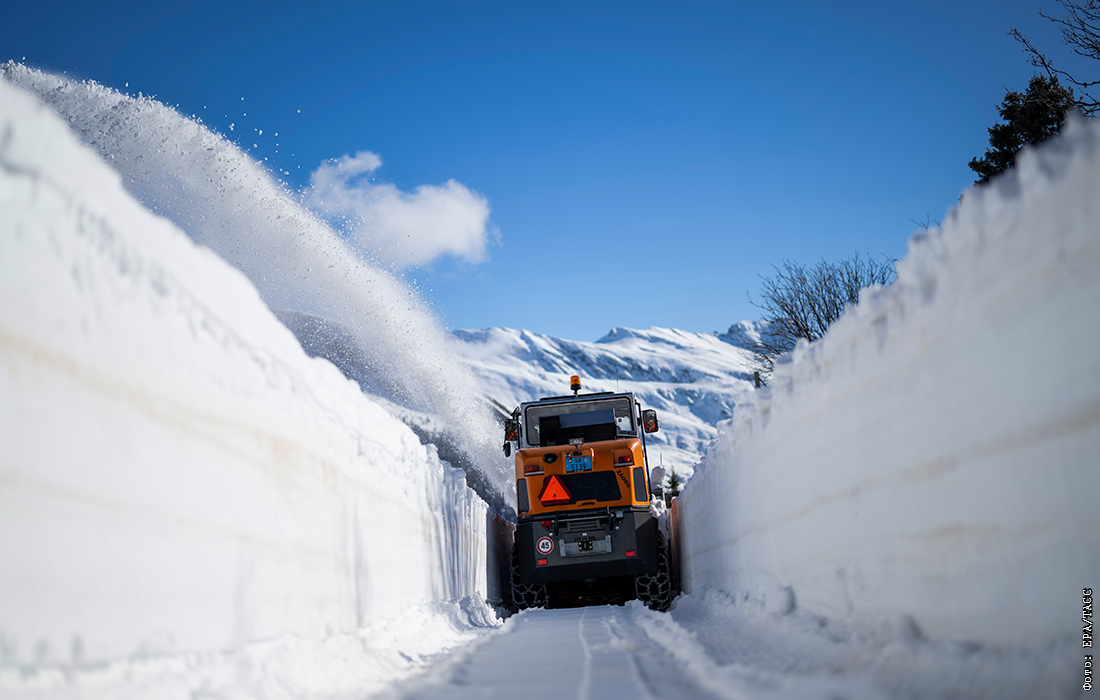Уборка снега на перевале Сан-Бернардино в Швейцарии