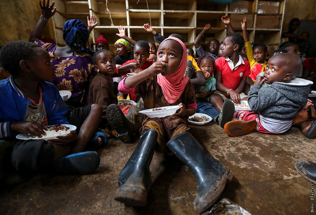 Эвакуированные из-за наводнения дети в Кении