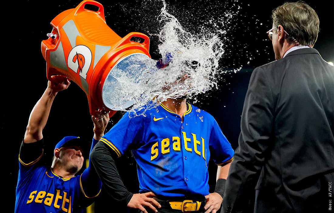 Игрок "Сиэтл Маринерс" Джош Рохас во время интервью после победы команды над командой "Аризона Даймондбэк" в бейсбольном матче в Сиэтле