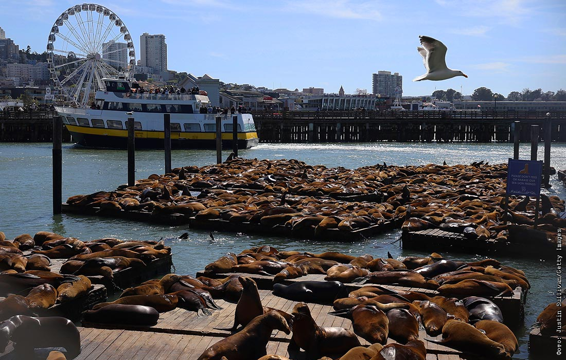 Более 1000 калифорнийских морских львов отдыхают в доках популярного туристического центра Сан-Франциско "Пирс 39"
