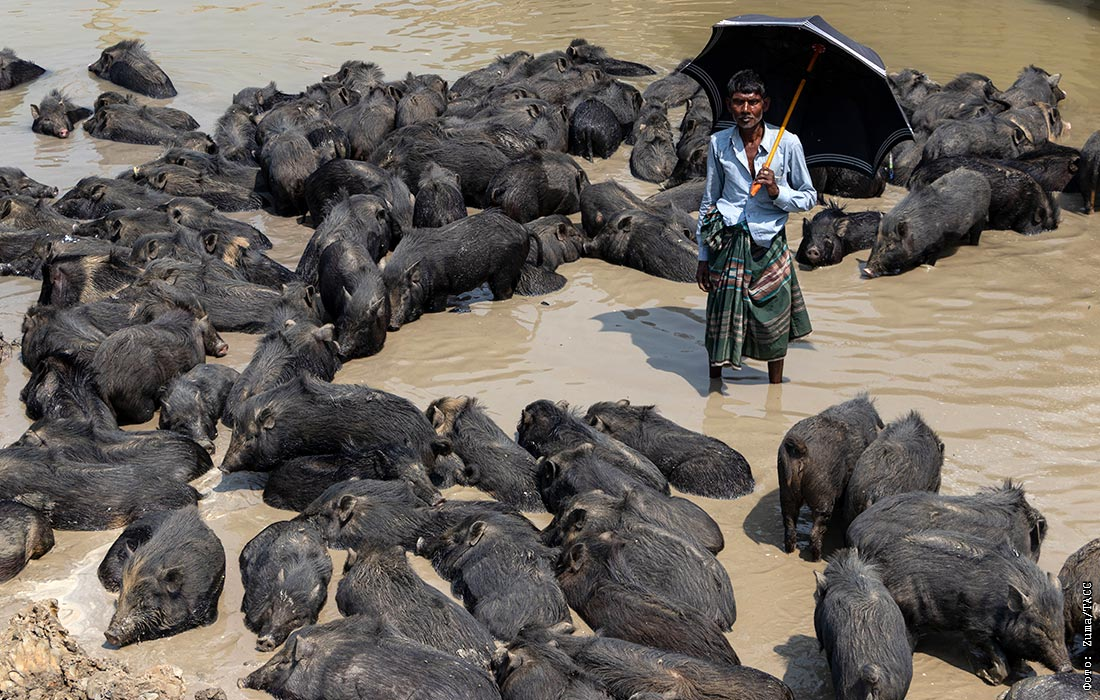 Свиньи на свалке в Нараянгандже на востоке Бангладеш