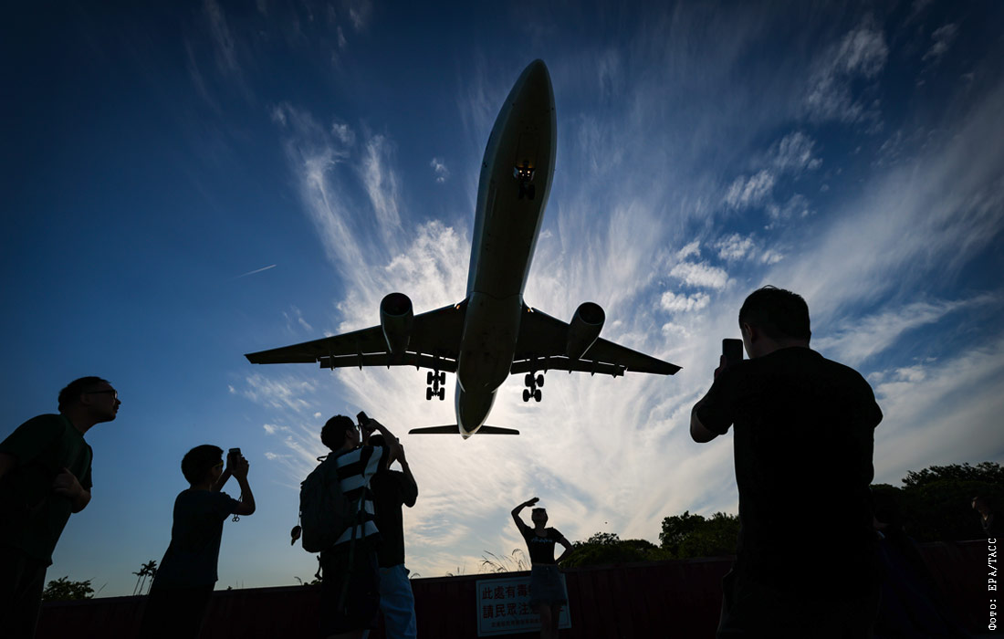 Жители Тайбэя наблюдают за самолетом, Тайвань