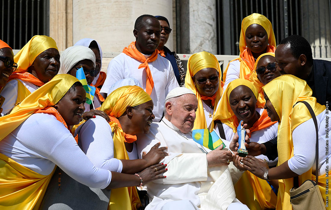 Папа Франциск приветствует монахинь во время своей еженедельной аудиенции на площади Святого Петра в Ватикане