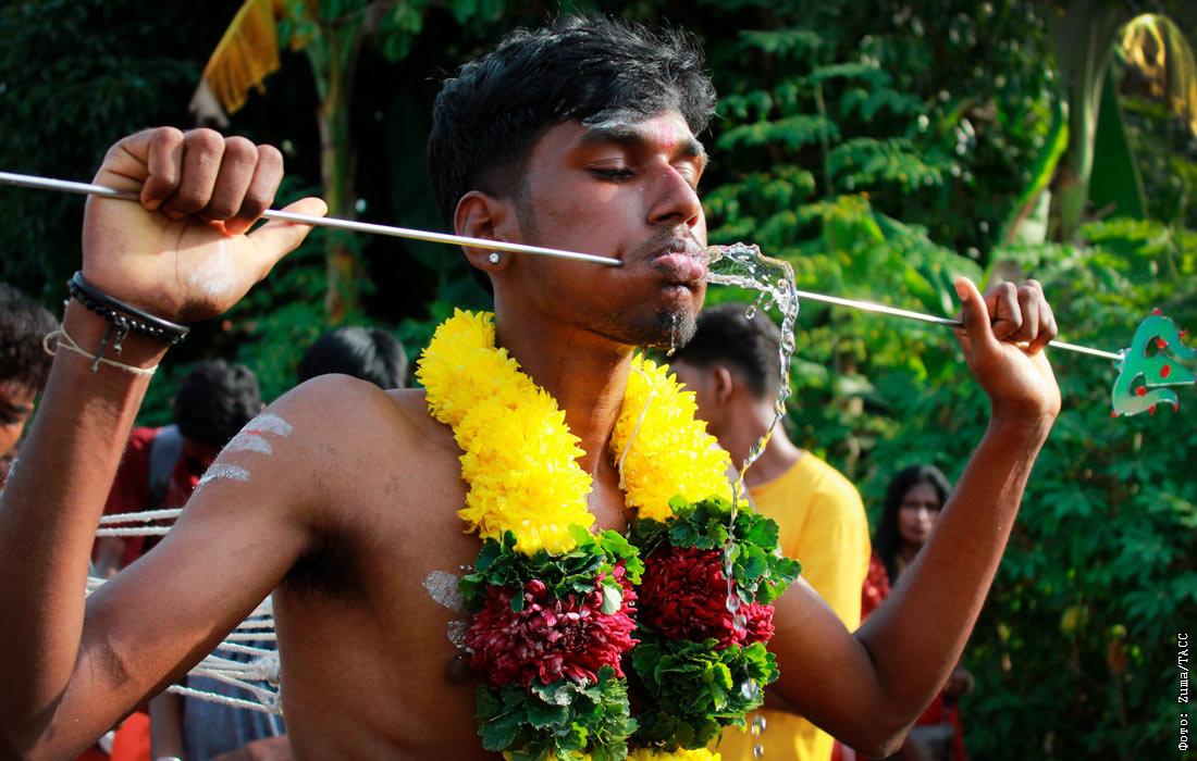 Индуистский культурный ритуал прокалывания тела в Индонезии