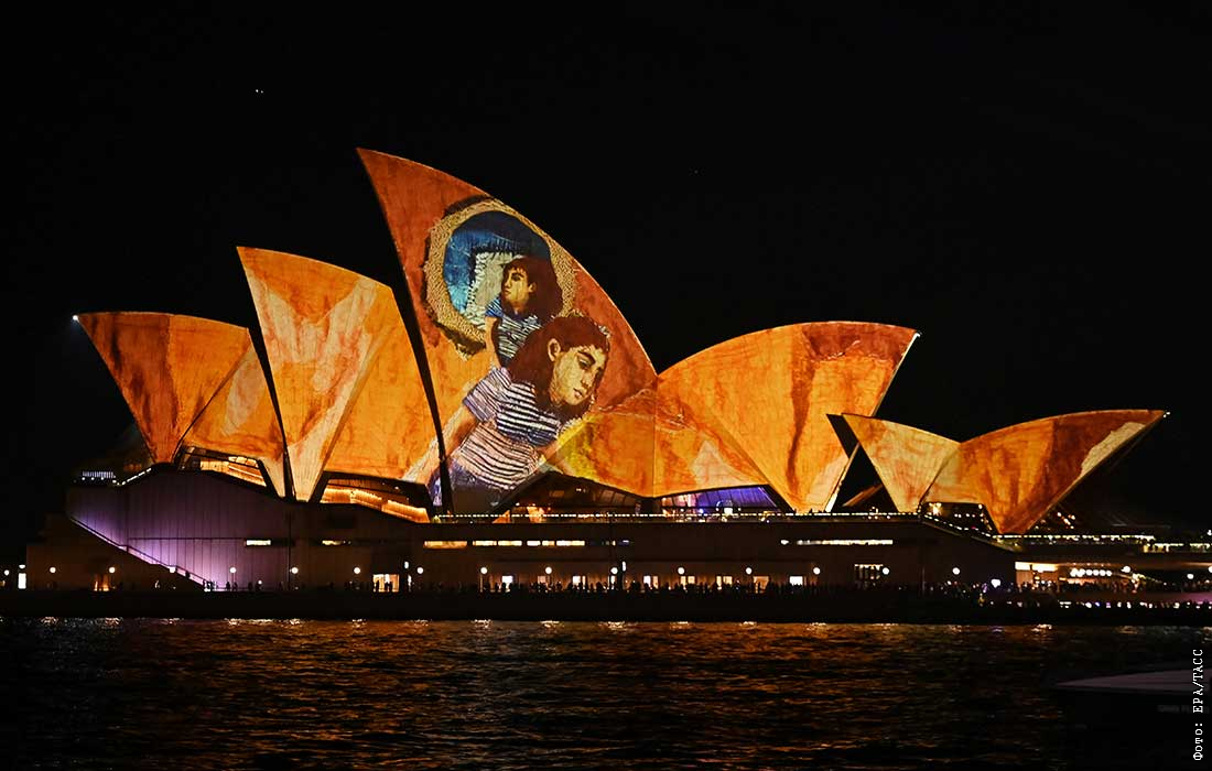 Световые проекции на здании Оперного театра в Сиднее в рамках фестиваля музыки и света Vivid