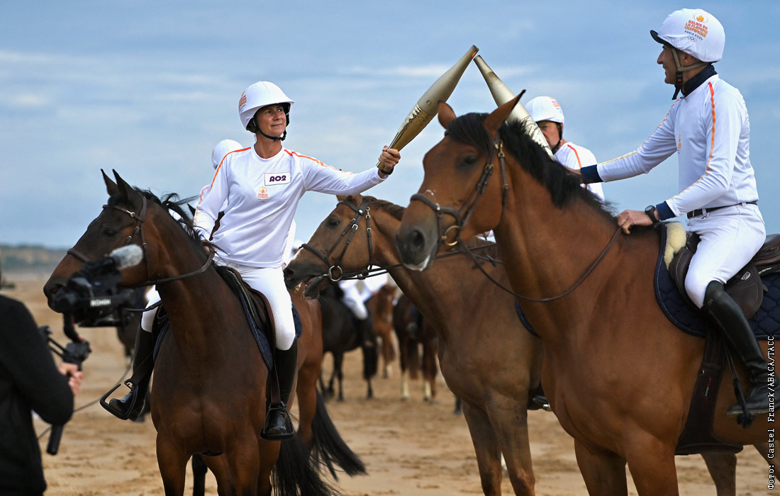 Эстафета олимпийского огня на пляже Омаха-Бич в Нормандии