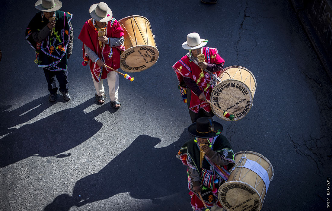 Участники празднования андо-амазонского нового 5532 года в Боливии