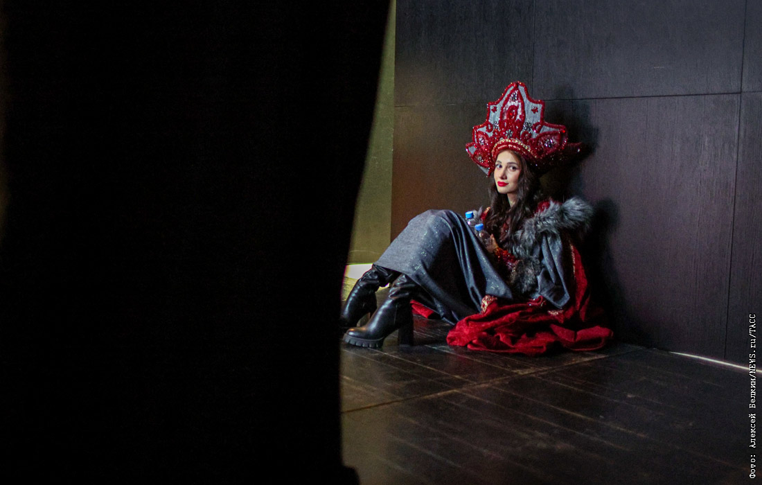 Участница конкурса "Миссис Россия Мира 2024" перед выходом на сцену
