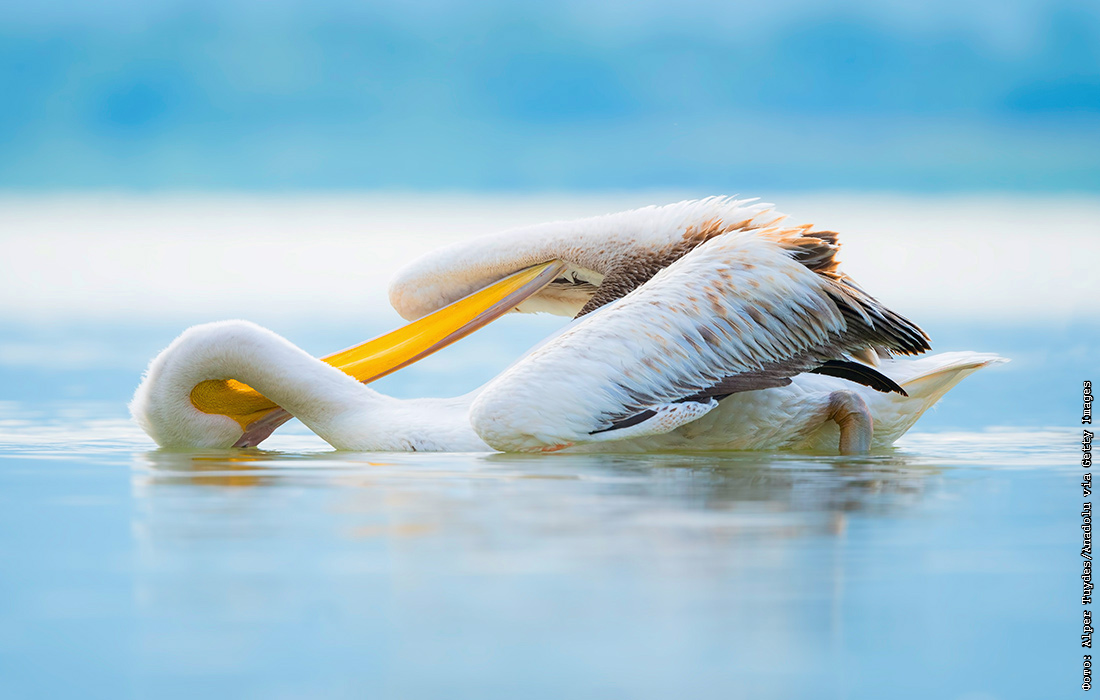 Пеликан в озере Голязи, Турция