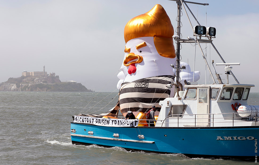Большая надувная курица с прической Дональда Трампа в Сан-Франциско
