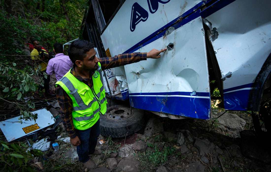 Десять человек погибли при падении автобуса в ущелье на севере Индии после обстрела со стороны боевиков