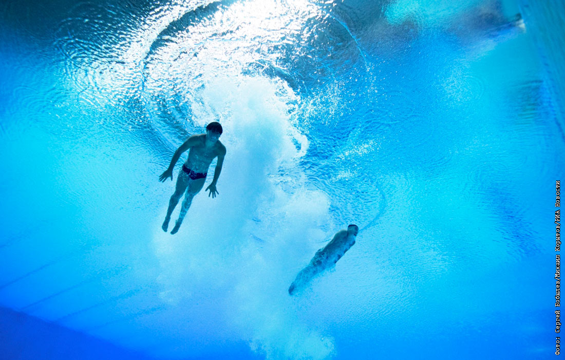 Рафаэль Фогача и Рафаэль Макс (Бразилия) в соревнованиях по синхронным прыжкам в воду с трамплина 3 метра