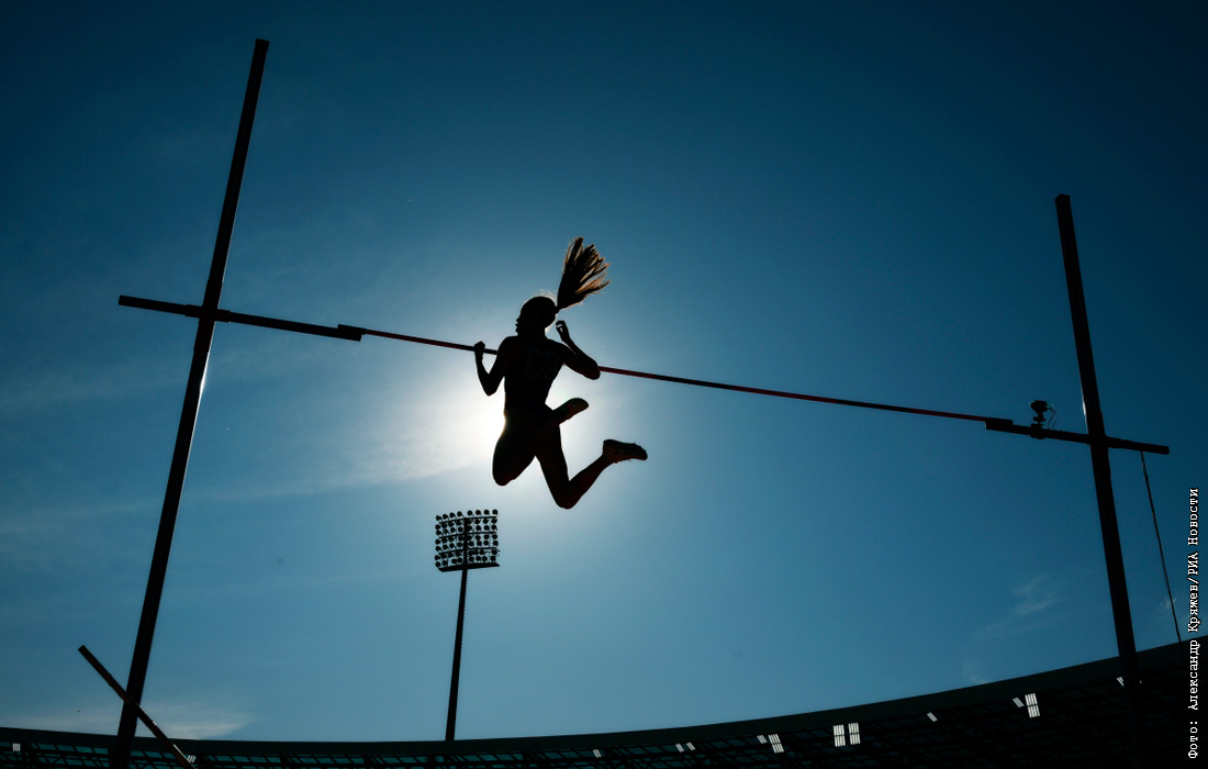 Полина Кнороз (Россия) в финальных соревнованиях по прыжкам с шестом среди женщин