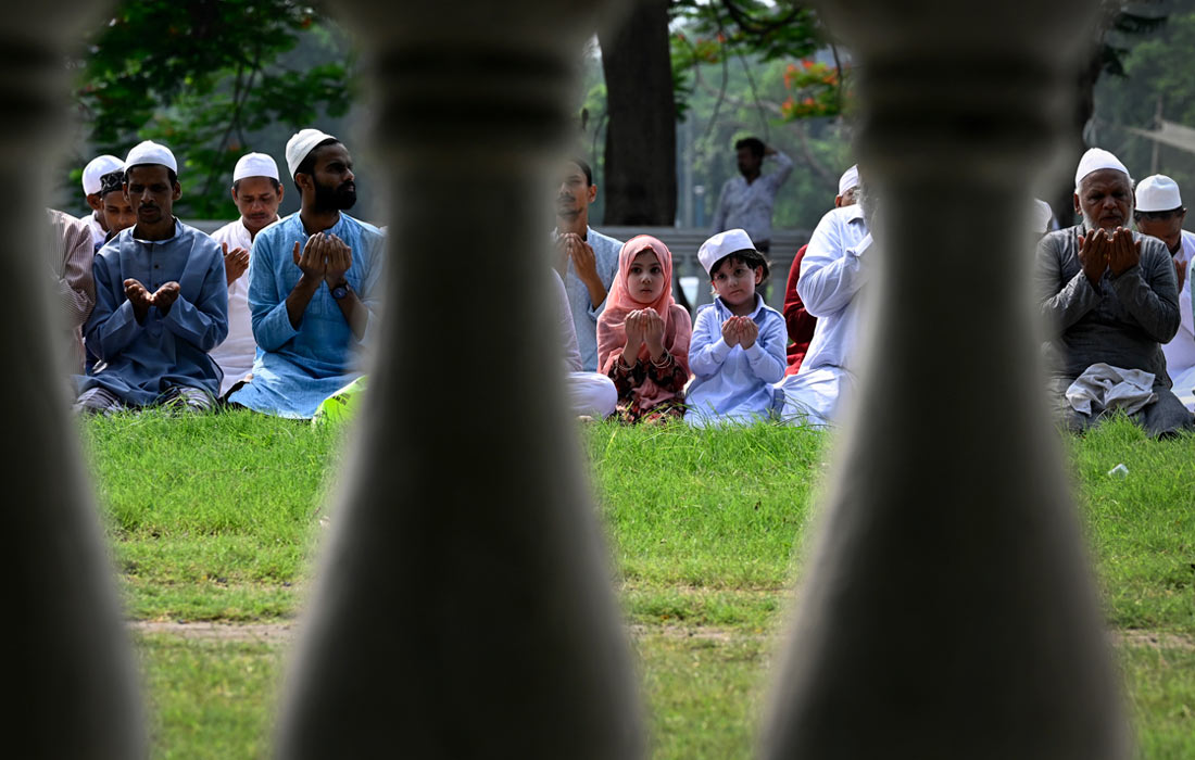 Мусульмане совершают молитву на дороге в Калькутте, Индия