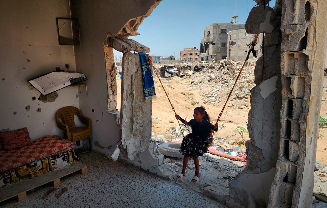 Девочка среди обломков разрушенного дома в Хан-Юнисе, Газа