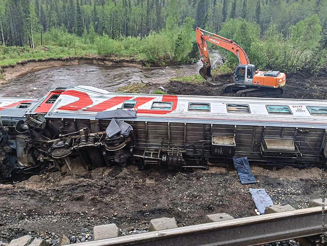 26 июня на перегоне Инта-1 - Угольный сошли с рельсов девять вагонов пассажирского поезда 511 Воркута - Новороссийск. В нем находилось 195 пассажиров и 20 работников железной дороги. Пострадали до 40 человек, двое погибли, еще одного пассажира ищут. По предварительным данным, причиной ЧП стала размытая дождями насыпь. Возбуждено уголовное дело.