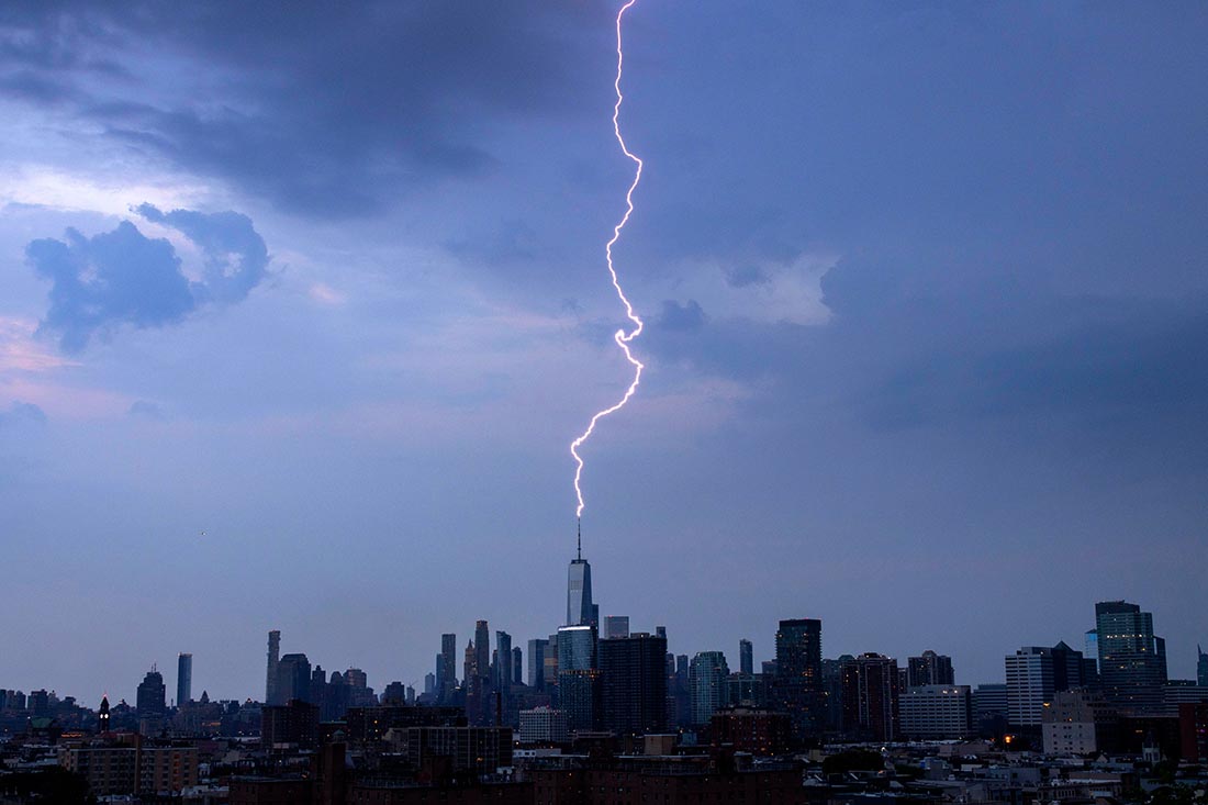 Молния ударила во Всемирный торговый центр в Нью-Йорке