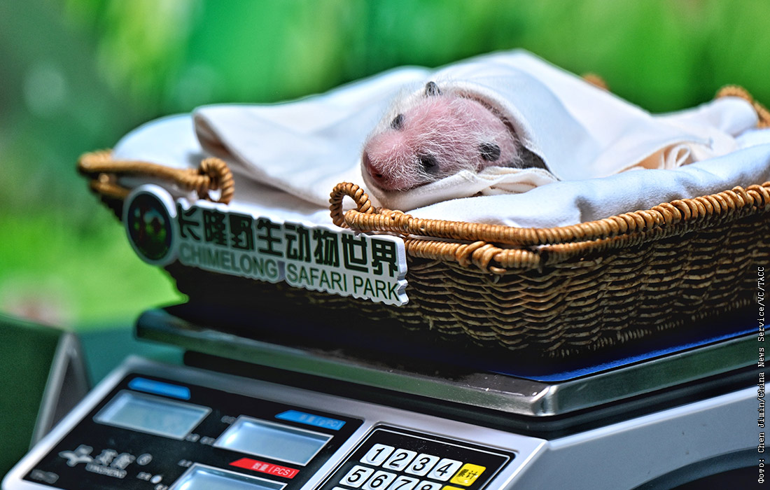 Новорожденный детеныш панды в сафари-парке Чимелонг в Гуанчжоу