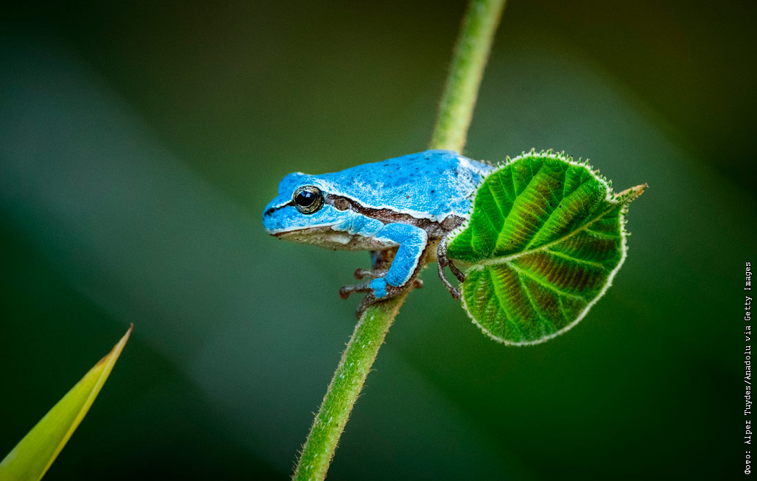 Голубая древесная лягушка в районе Каракабей города Бурса, Турция