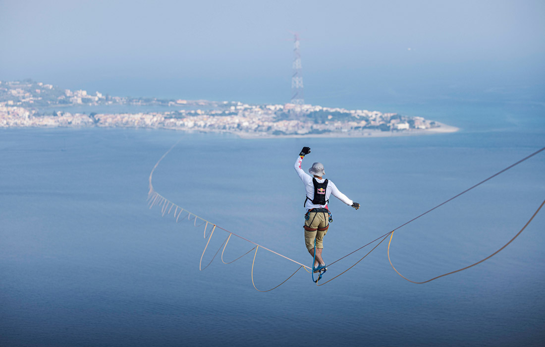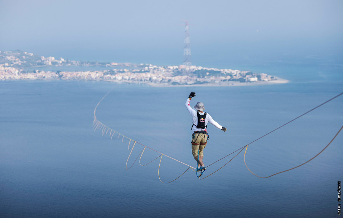 Трехкратный чемпион мира по слэклайну Яан Русе пересек Мессинский пролив