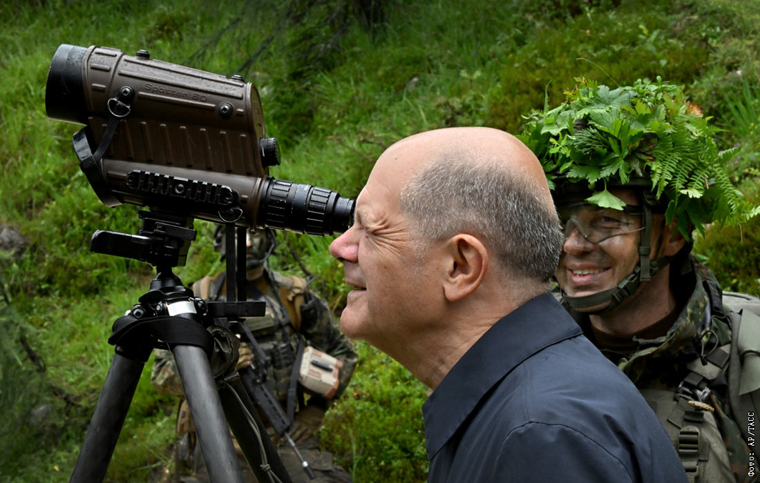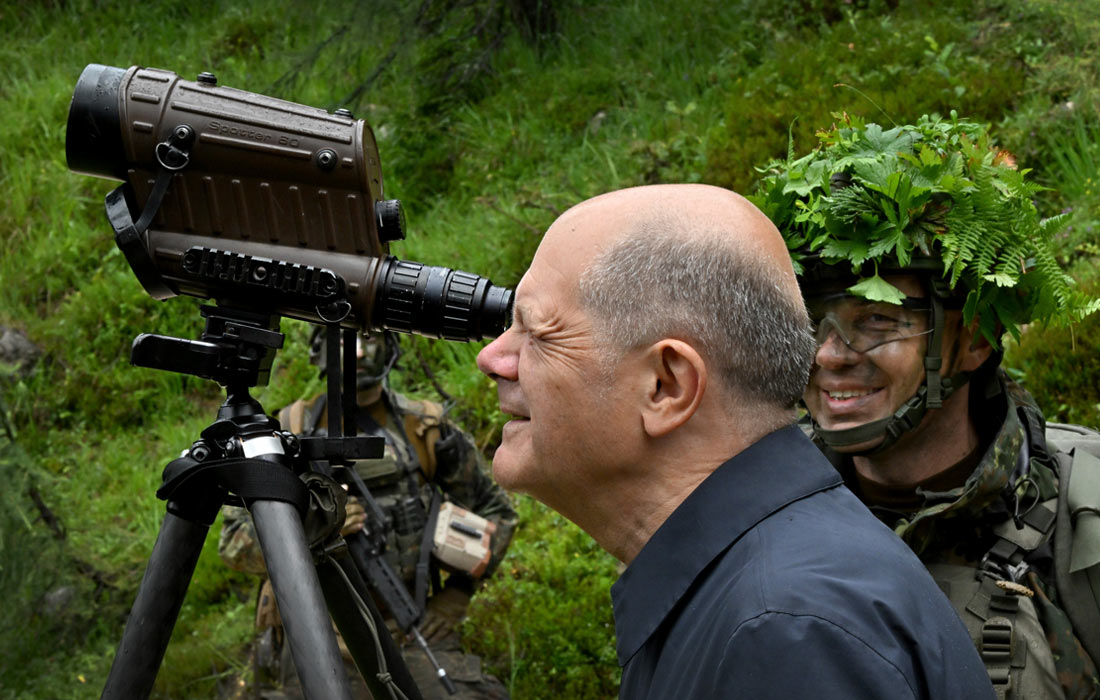 Канцлер Германии Олаф Шольц посетил учения горнострелковой бригады в Шнайцлройте