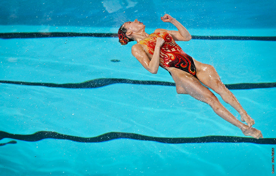 Спортсменка из Китая во время соревнований по синхронному плаванию на Олимпиаде в Париже