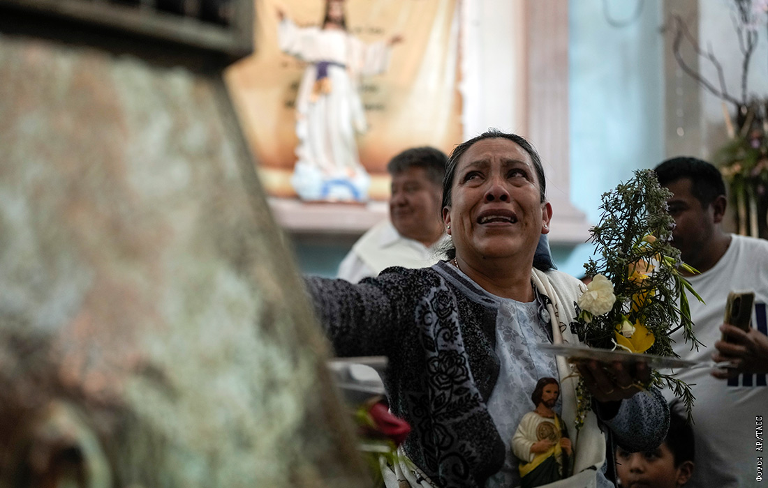 Прихожане церкви в городе Сан Кристобаль де лас Касас, Мексика
