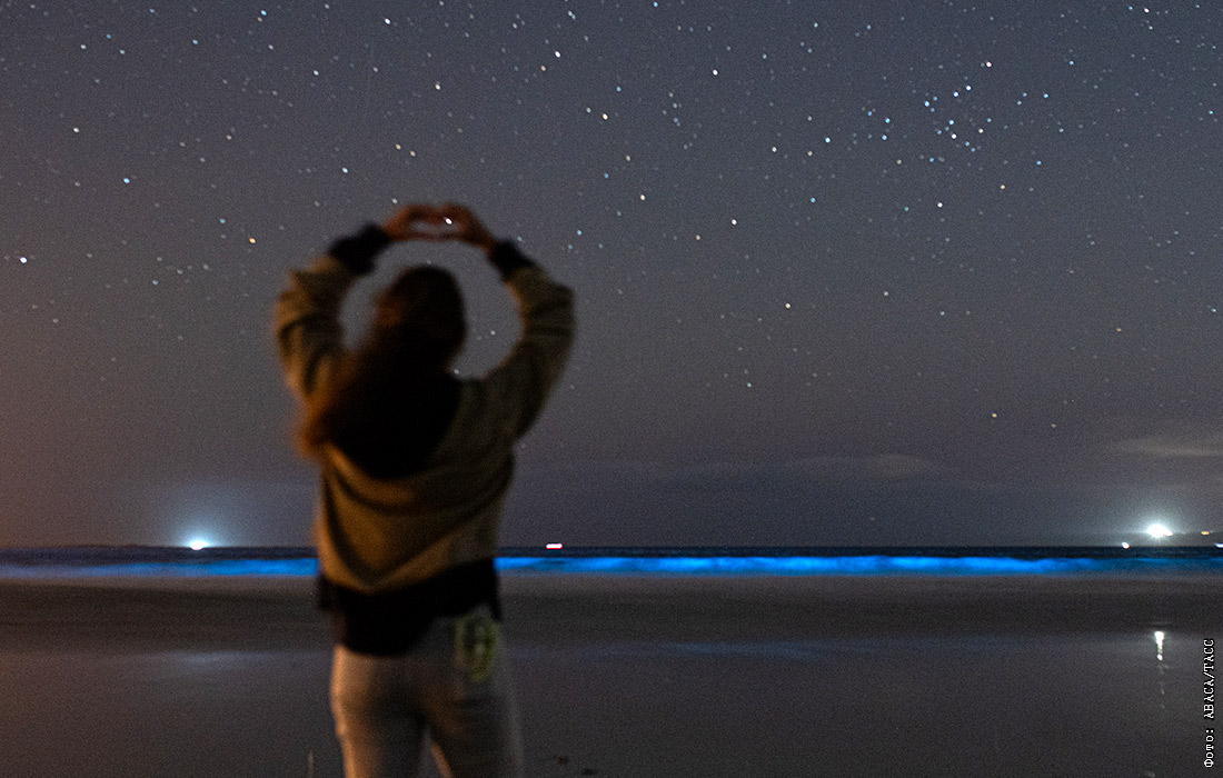 Светящиеся морские водоросли на пляже в Карноте, Испания