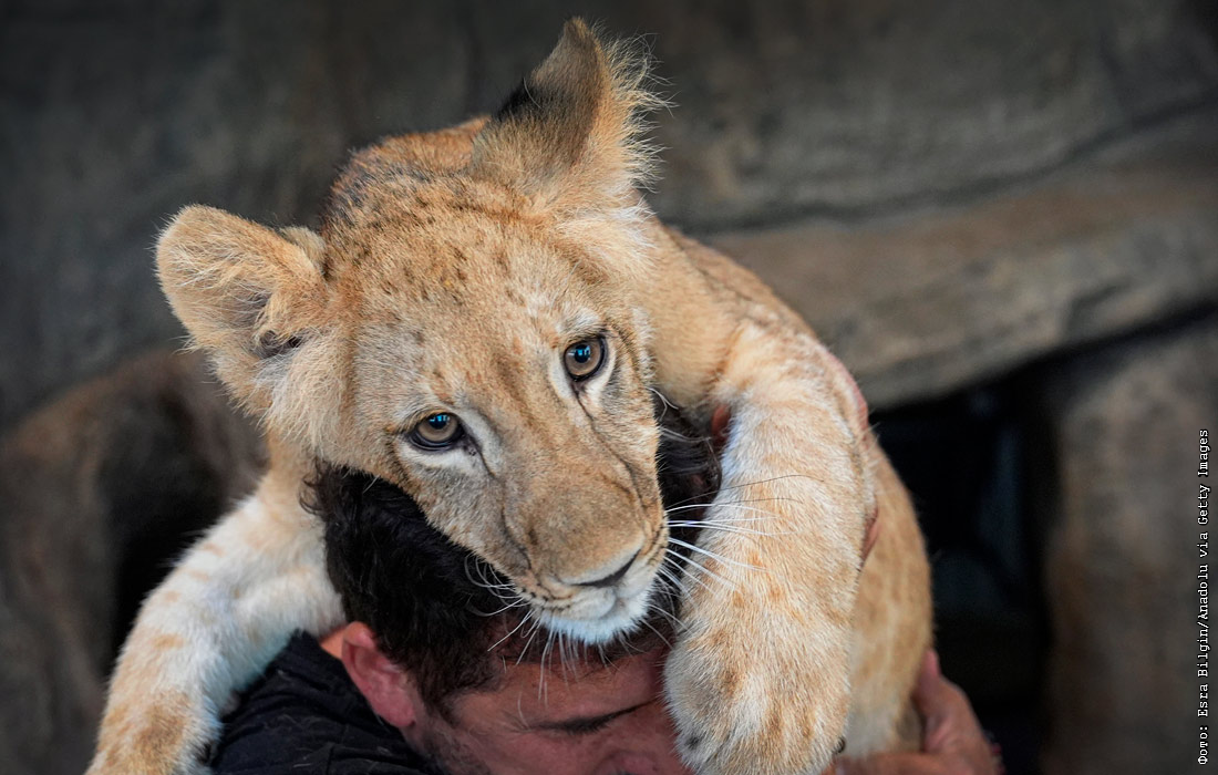 Ветеринар обнимает львенка в Стамбуле