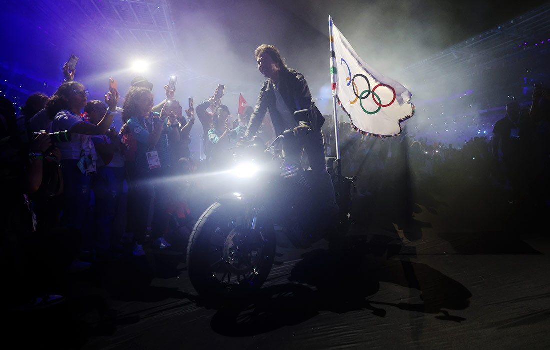Том Круз выступил на церемонии закрытия Олимпийских игр в Париже. Актер спустился на тросе с крыши стадиона, забрал флаг Олимпийских игр и уехал с ним на мотоцикле.
