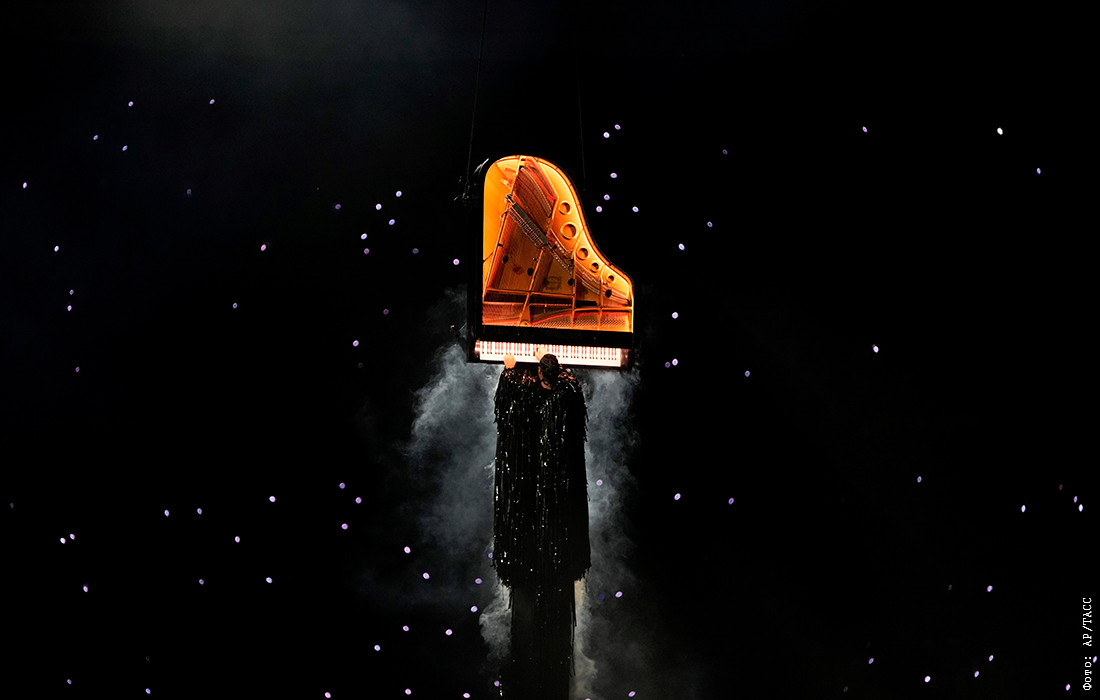 Пианист Ален Рош на церемонии закрытия летних Олимпийских игр в Париже