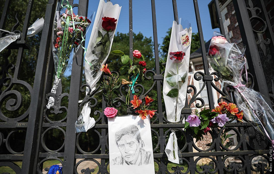 Цветы у дома Алена Делона в коммуне Души. Французский актер скончался в воскресенье в возрасте 88 лет.